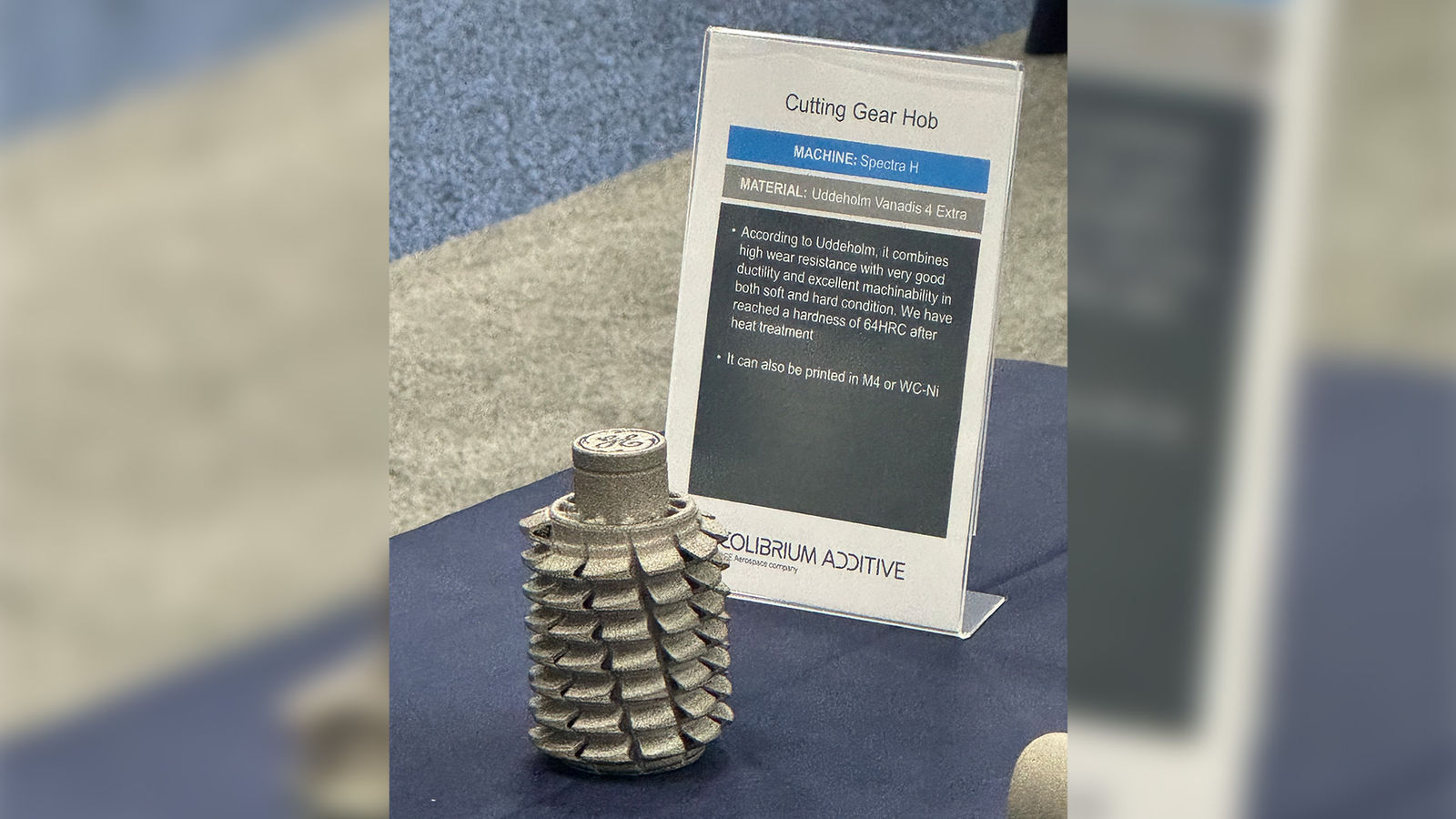 We also included a few major industry players. Nikon updated us on the latest offerings from their additive work. They have a lab in California for companies to conduct secure research. Colibrium Additive (formerly GE Additive) displayed a hob printed from tool steel that reached 70 Rockwell hardness. This represented only the second instance we’ve seen of a 3D-printed hob, marking another step forward in tool manufacturing via additive methods.