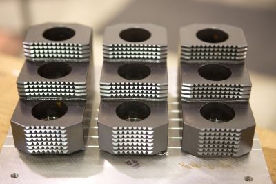 Hard jaws from Dillon Manufacturing, Inc. feature diamond-shaped serrations for increased pull-down effect reducing part slippage and push back, especially when using a bar feeder.
