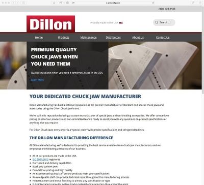 Dillon Manufacturing introduces their new website which combines expanded technical data, a comprehensive E-Catalogue, and videos to allow users to peruse and better understand DillonÂ’s complete range of workholding products. Their full lineup of full grip jaw sets, hard jaw sets, collet pads and jaws, and accessories are detailed with complete technical data, drawings, photos and videos. The new site and richer online content assure customers that they receive the latest technical information each time they visit the site. These new functionalities were added at the request of customers to make it easier to navigate and share with others via Facebook, Twitter and Google+, thus assisting in the specification process. Designed with the latest WordPress technology, the new site is compatible with all browsers and mobile devices, without the need for Adobe Flash. Website visitors can also benefit from a News & Media section which features the latest company news and announcements, product inventions and opinion pieces from industry experts.