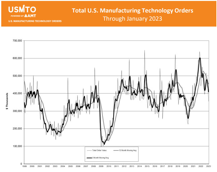 “January orders are down, but the decline is consistent with expectations,” said Douglas K. Woods, president of AMT. “Although down, it is worth noting that orders in January 2023 are nearly 17% above what would be expected from a typical January.