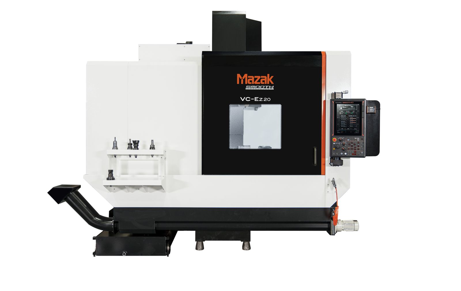 All VC-Ez Series machines sport C-frame designs with X and Y axis motion via moving the table and saddle. For rigidity and repeatable part precision, guideway systems use Mazak’s Hybrid MX linear roller guide systems, and dual lagged pre-tensioned ball screws ensure precise axis movement. For increased maintenance free operation, the auger-type chip removal systems provide an economical solution, or for increased chip volume the addition of an affordable hinge-type chip conveyor ships affixed to the machine to eliminate the cost of a second shipping pallet.
