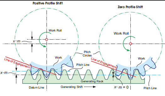 Profile development. Shigeyoshi Nagata, a professor at the University of Tokyo published a paper in 1981 where he discusses a proposed improvement of the extended Wildhaber-Novikov profile design (Ref. 4). Nagata bases the profile definitions not on the gear teeth, but on the rack cutter or reference profile. The basic construction of this profile is represented in Figure 8.