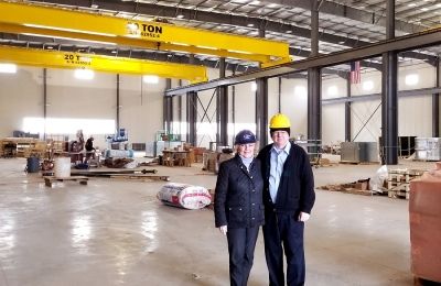 Anticipation is growing, as Solar Manufacturing’s new facility is beginning to take shape. With the exterior of the building now fully enclosed, including the nearly 20,000 square foot two story office building situated in the front of the manufacturing area, the next phase of building can begin, bringing the project closer to completion. Bill and Myrtle Jones, owners of the Solar Atmospheres family of companies, stand in the center of the 40,000 square foot manufacturing area during the most recent site inspection.