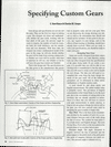 Gear design and specification are not one and the same. They are the first two steps in making a gear. The designer sits down and mathematically defines the gear tooth, working with the base pitch of the gear, the pressure angle he wants to employ, the number of teeth he wants, the lead, the tooth thickness, and the outside, form and root diameters. With these data, the designer can create a mathematical model of the gear. At this stage, he will also decide whether the gear will be made from existing cutting tools or whether new tools will be needed, what kind of materials he will use, and whether or not he will have the gear heat treated and finished.